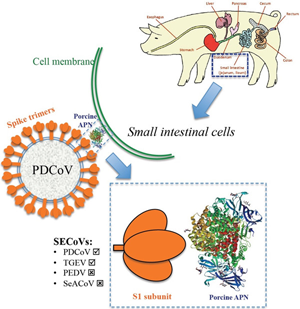 由TGEV引起的豬傳染性胃腸炎(TGE)是一種高度接觸性消化道傳染病,以嘔吐、水樣腹瀉和脫水為特征。TGEV在短期內(nèi)能引起各種年齡的豬100%發(fā)病,死亡率也高,2周齡內(nèi)的仔豬死亡率達(dá)90%-100%,康復(fù)仔豬發(fā)育不良,生長(zhǎng)遲緩。由PEDV引起的豬流行性腹瀉(PED)是一種接觸性腸道傳染病,其特征為嘔吐、腹瀉、脫水。臨床變化和癥狀與TGE很相似,可發(fā)生于任何年齡的豬,年齡越小,癥狀越重,死亡率高,尤以哺乳豬受害嚴(yán)重。PDCoV是一種新型豬腸道冠狀病毒,可引起5-15日齡哺乳仔豬腹瀉和嘔吐,迅速脫水,衰竭而亡,發(fā)病率和死亡率高達(dá)50%-100%。2018年5月14日,發(fā)表在美國(guó)《國(guó)家科學(xué)院學(xué)報(bào)》上的研究顯示,近年來在多國(guó)發(fā)現(xiàn)的PDCoV具有在物種間傳播的可能性。