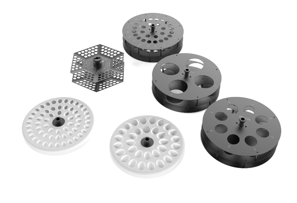 1.5 /2mL*132、1.5/2 mL*240、5 mL*72、(10 mL-15 mL)*28、50 mL*8+10 mL*8、100 mL*8、250 mL*4 雙層轉子:2 mL*90*2、進樣瓶4 mL*60、8mL*32、可根據客戶需求定制轉子
