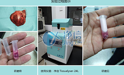 研究原理:腹膜組織因其韌性特別強,樣本體積小,樣本本身脂肪含量高等特點,使得實驗室操作人員在研磨過程中比較難以處理,上海凈信組織研磨儀正好為用戶解決這一重大難題,樣本粉碎后用于提蛋白!