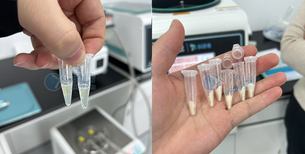 實驗前樣本為淺黃色透明液體,體積較大。實驗后樣本體積明顯減小成固體狀,樣品完全濃縮干透。整個過程在低溫下進行,真空下快速蒸發(fā)的同時,很好的維護了蛋白活性。