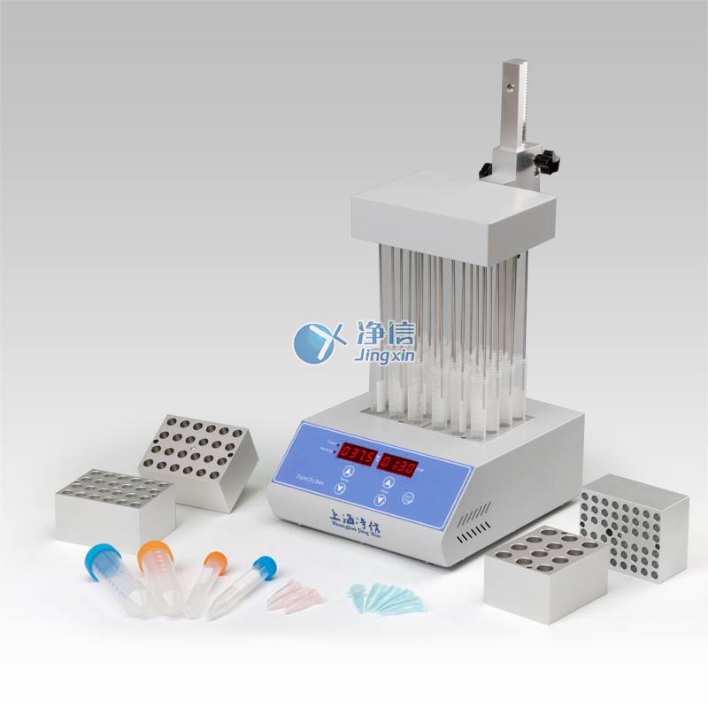 JXDC-20氮?dú)獯祾邇x采用微電腦和PID模糊控制技術(shù),利用高純度鋁材料做為導(dǎo)熱介質(zhì),以代替?zhèn)鹘y(tǒng)的水浴裝置,具有使用方便、控溫范圍大、精度高等特點(diǎn)。其工作原理是將氮?dú)饣蚩諝饪焖佟⑦B續(xù)、可控地吹到加熱樣品表面,并根據(jù)被濃縮溶劑的蒸發(fā)速度和沸點(diǎn),設(shè)定加熱溫度,實(shí)現(xiàn)大量樣品的快速濃縮。